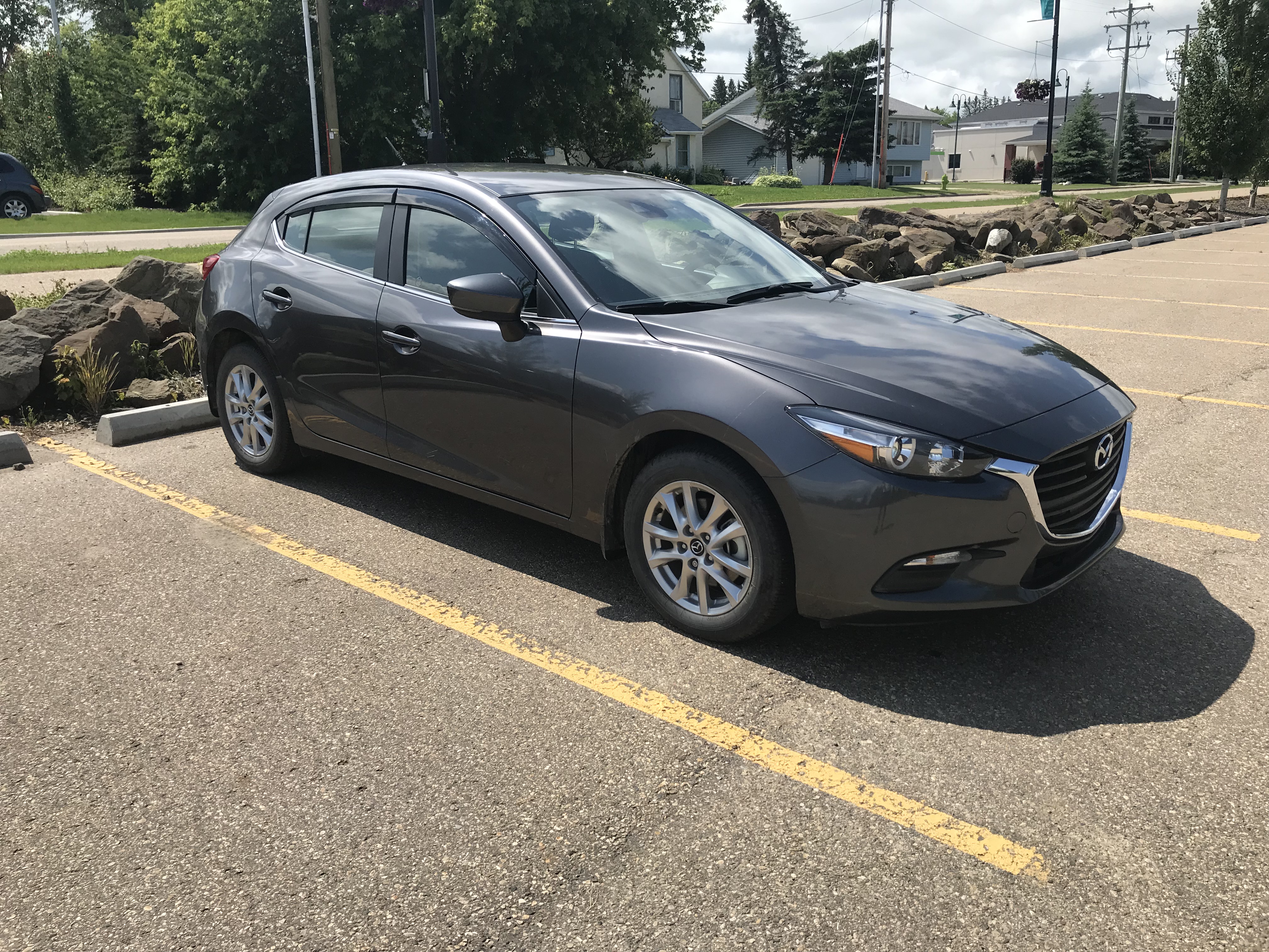 Now I should start off by saying that this 2018 Mazda 3 Sport GS is actually my vehicle. I bought it brand spanking new in November of 2018. This is first new car I have ever bought which I wasn’t a big fan of at first. My parents have always driven older vehicle so I believed to be “fiscally irresponsible” for me to get a new one. After discovering I could get 0% financing on a vehicle that holds resale value quite well, I decided to go against the family grain. Now I bought this car for a few reasons: